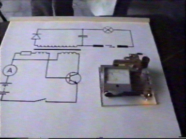 The gap between electrodes, battery powered transistor generator, lamp