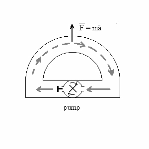 is simple inertial drive scheme: liquid is moving by pump inside of curved