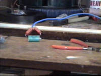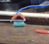 see arc between capacitor legs and this capacitor is charging from one