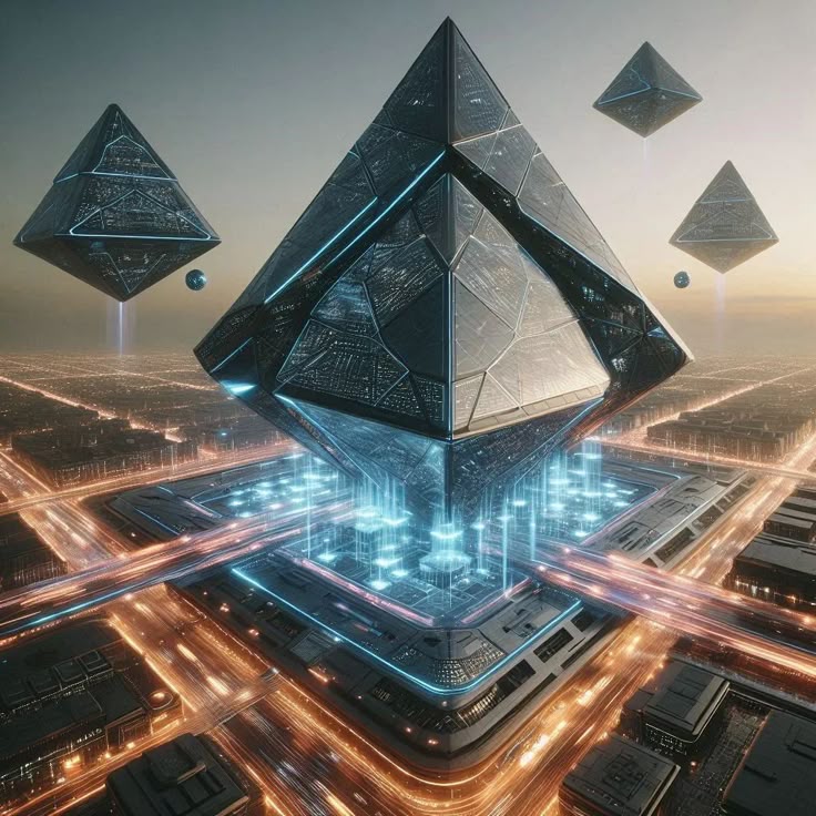 Pyramide shaped spacecrafts.