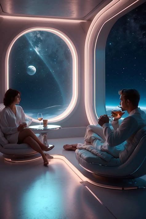 bedroom window in spaceship.